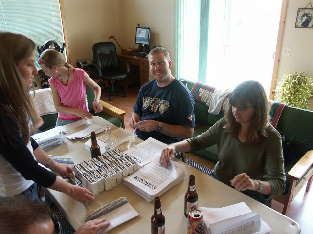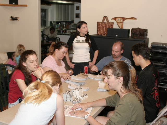 Oh I get by with a little help from my friends On Saturday April 29, 2006, a bunch of friends dropped by to help fill the thousands of backed up orders I received since running out of stickers. Here's a few photos from the day, which was filled with a lot of stickers, paper, envelopes and stamps. But most of all it was a great day to get everyone together and enjoy each other's company. Thank you all so much! Without your help and friendship I would have never got all those stickers out! Other Galleries >> Sticker Gallery |